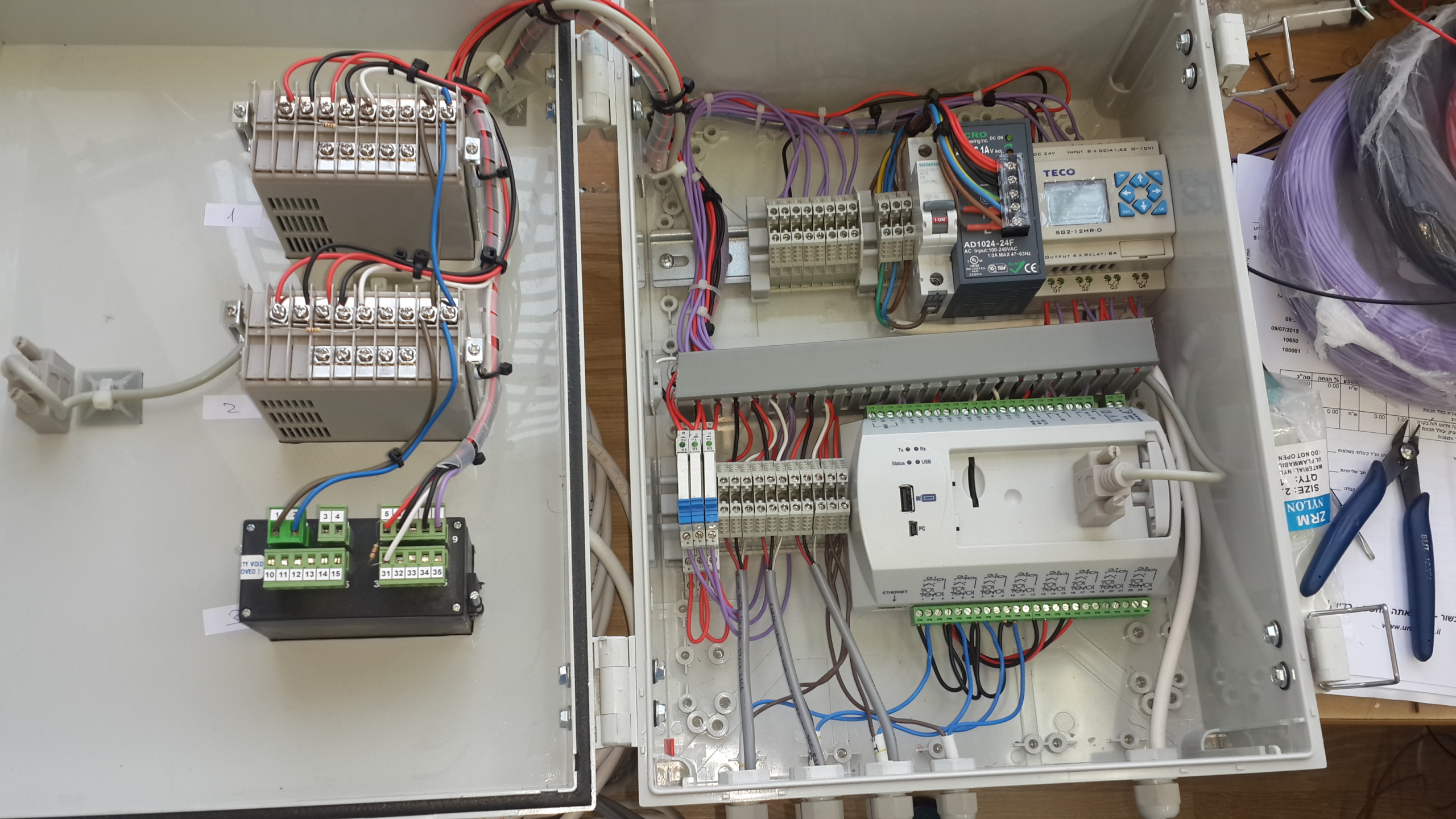דוגמה לארון בקרה הכולל אוגר נתונים רב ערוצי עם כניסות אנלוגיות וכולל סנסורי טמפרטורה מסוג PT100